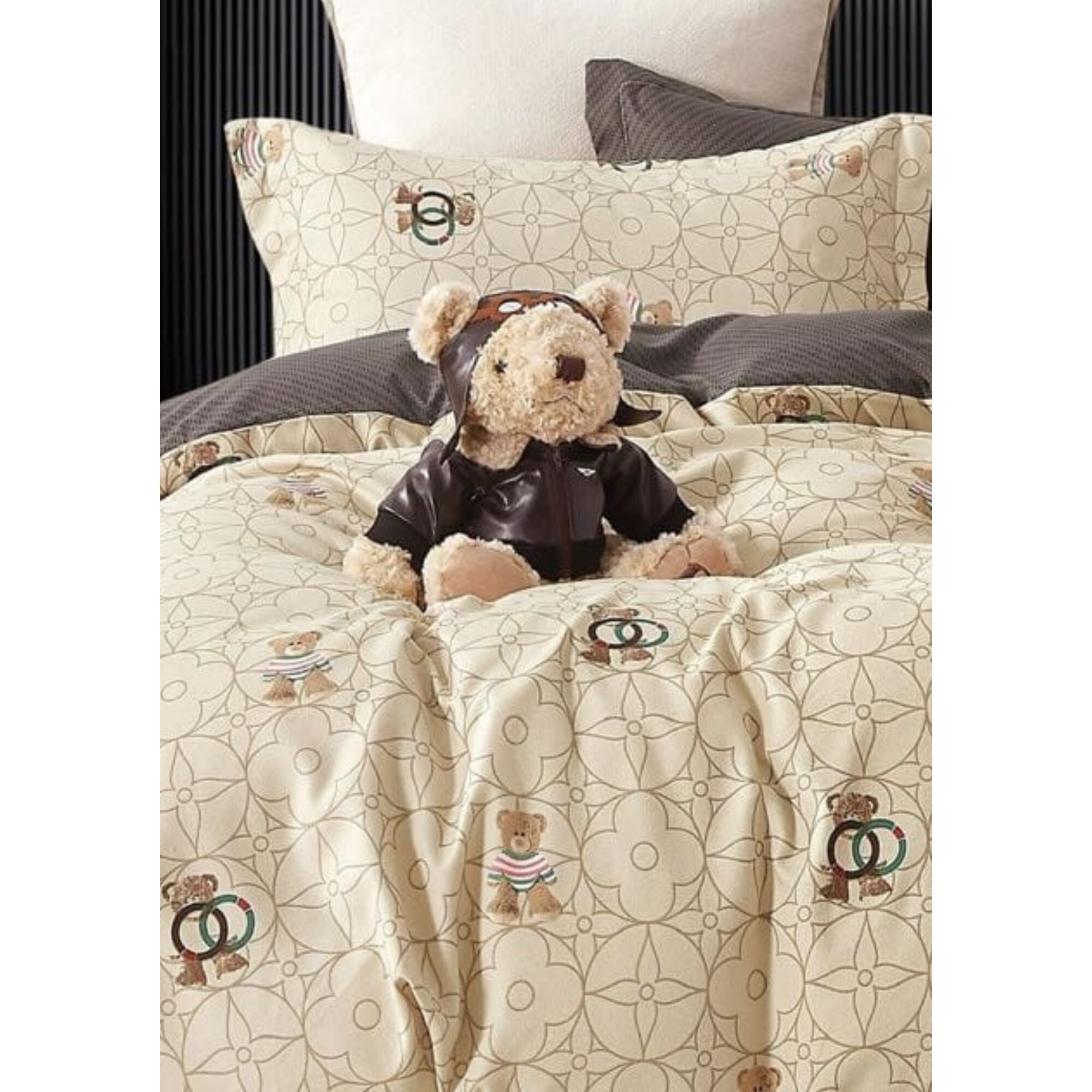 Спално бельо, 6 части, Памук, 230 х 200 см, Десен с плюшени мечета