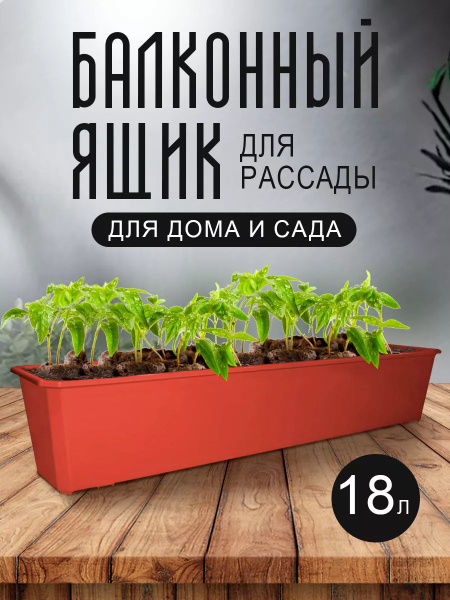 Балконный, уличный ящик для рассады и цветов, растений пластиковый 1804