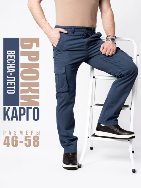 Брюки Мужской карго синий Хлопок Повседневный, размер 50, 52 Пуговицы