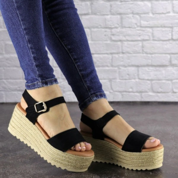 Женские черные босоножки на танкетке Spooke 1637 (39 размер)